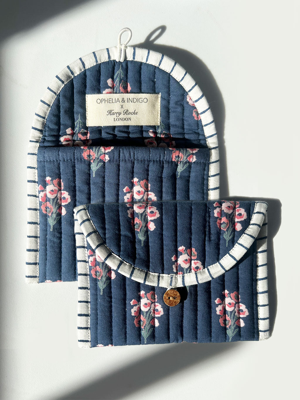 Every purchase from the limited edition O&I x Harry Rocks collection comes with a complimentary quilted jewelry pouch made from surplus O&I fabric.