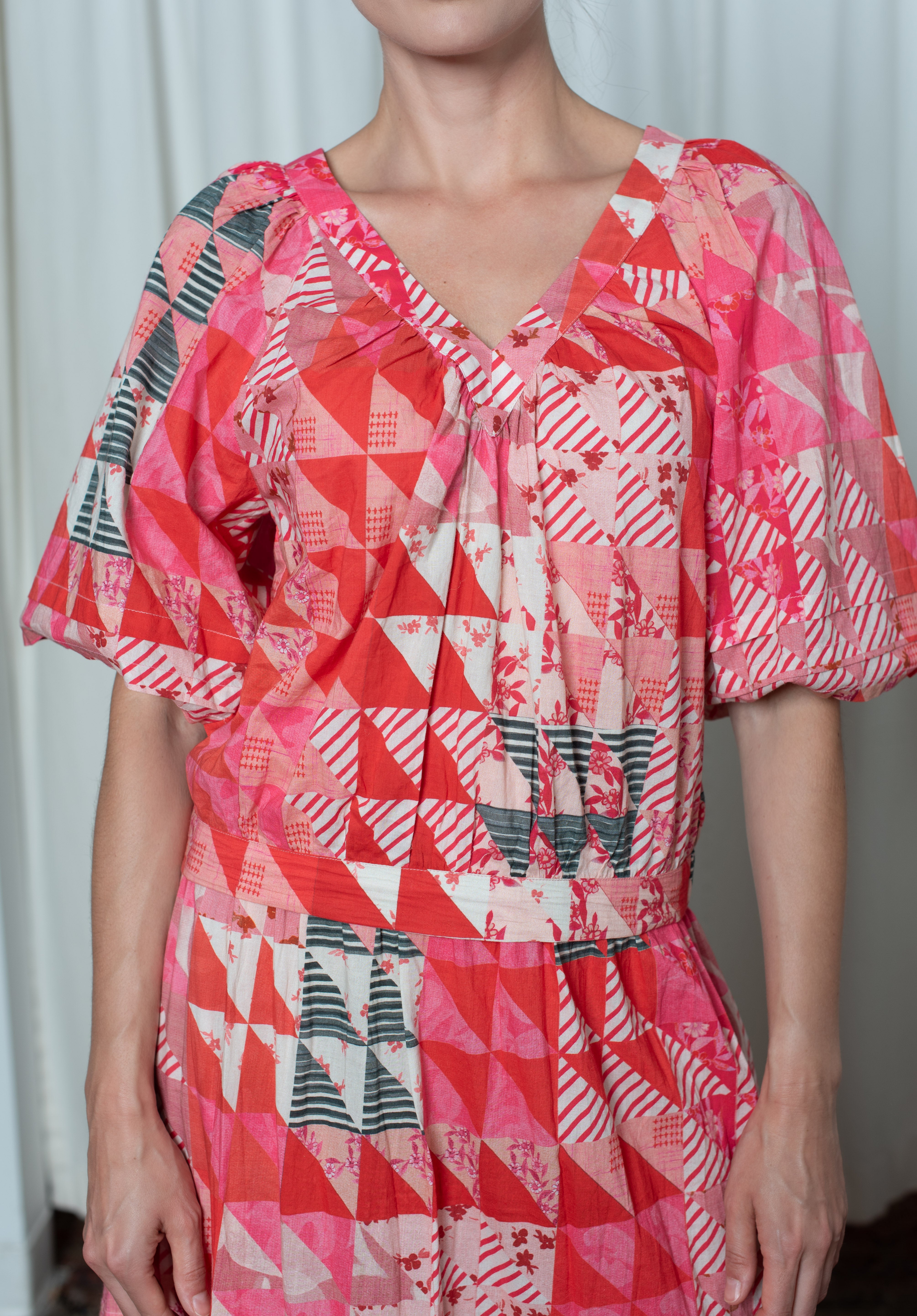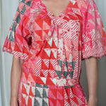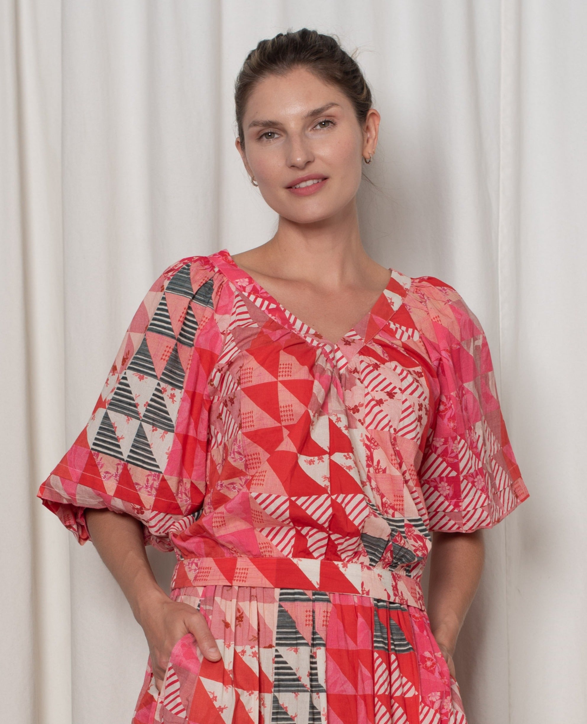 The Coco top is a new style for this season and can be worn with the matching Coco skirt to make a stylish coordinating set or as a colorful contrast with denim.