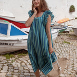 It comes in two new beautiful block prints and features a stunning statement flutter sleeve.