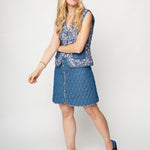 The skirt is short but not too short (we've all tried it!) and is reversible with a button through front placket. Wear it like Liz with boots and a pretty white blouse or for a more casual look, just add sneakers and dress it down with a t-shirt. Whether you add the matching Liz jacket or Selma vest is up to you.