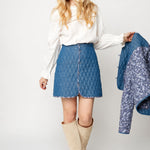 The Adrianne skirt is a fun piece that defines the O&I x The New York Stylist collection - Liz loved the idea of adding a skirt that could be matched with either the jacket or the vest. A quilted skirt was something completely new for us but we could not love it more!