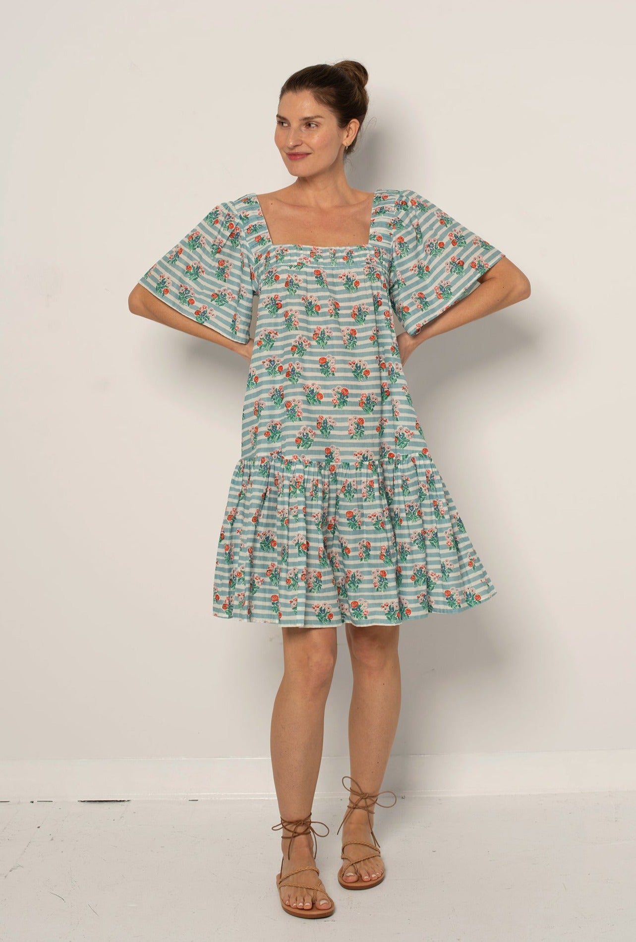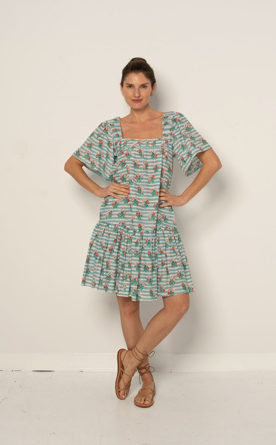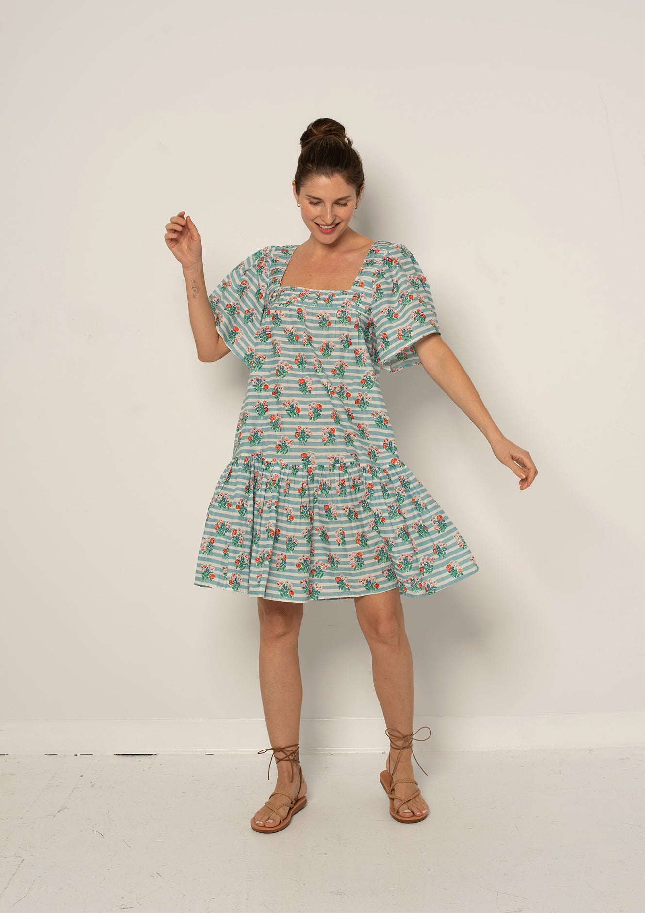 The Fifi dress is back in this new floral stripe block print and we've added new detail around the neckline with pretty pintucks. We've also improved the fit!