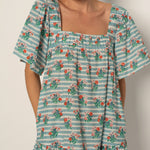 The definition of effortless dressing, the Fifi is a piece that you will wear over and over again with its angel sleeves, flattering suits-everyone square neck and subtle smocking across the back. It has a full skirt, a low full tier and like all our dresses, pockets.