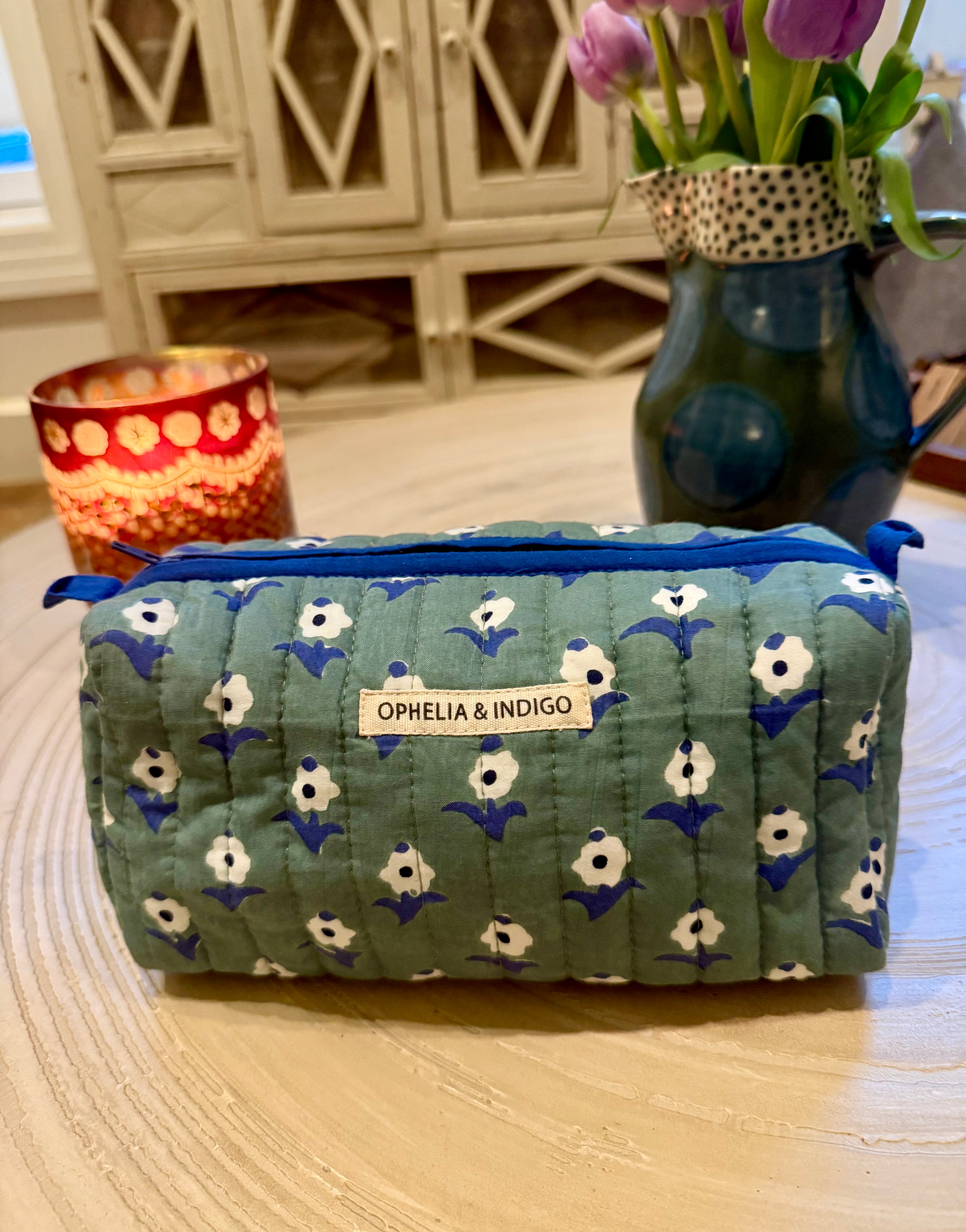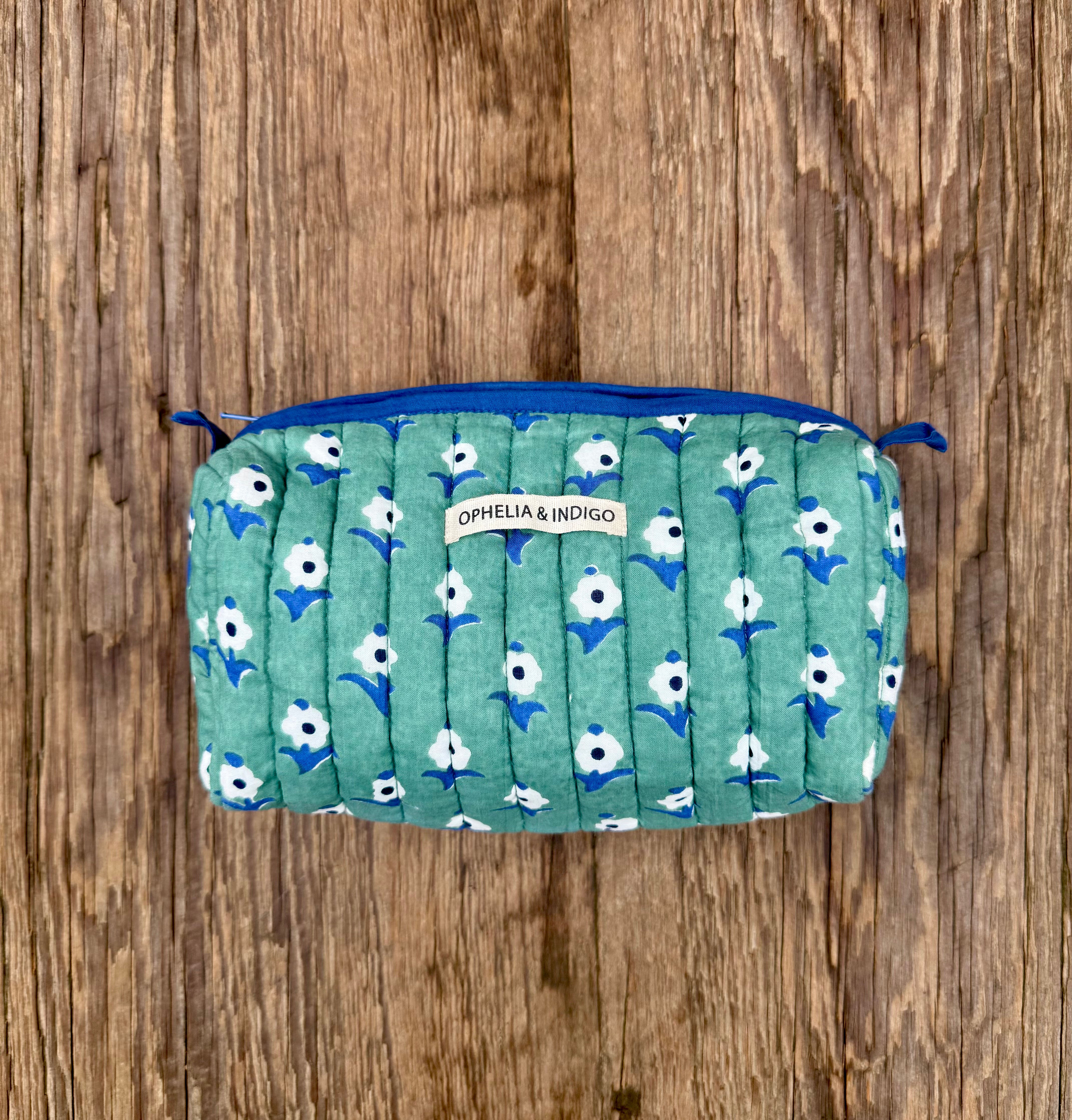 An ideal gift for a friend or get one for yourself (we have several), our quilted cosmetic cases are made from our cotton block print fabric. It is the perfect companion for organizing all your on-the-go essentials in your (O&I tote!) bag and is also great as a travel wash bag.