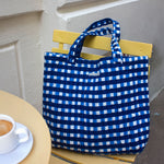 If you like this new gingham block print, we've also used it to make quilted pouches, pjs and scrunchies.