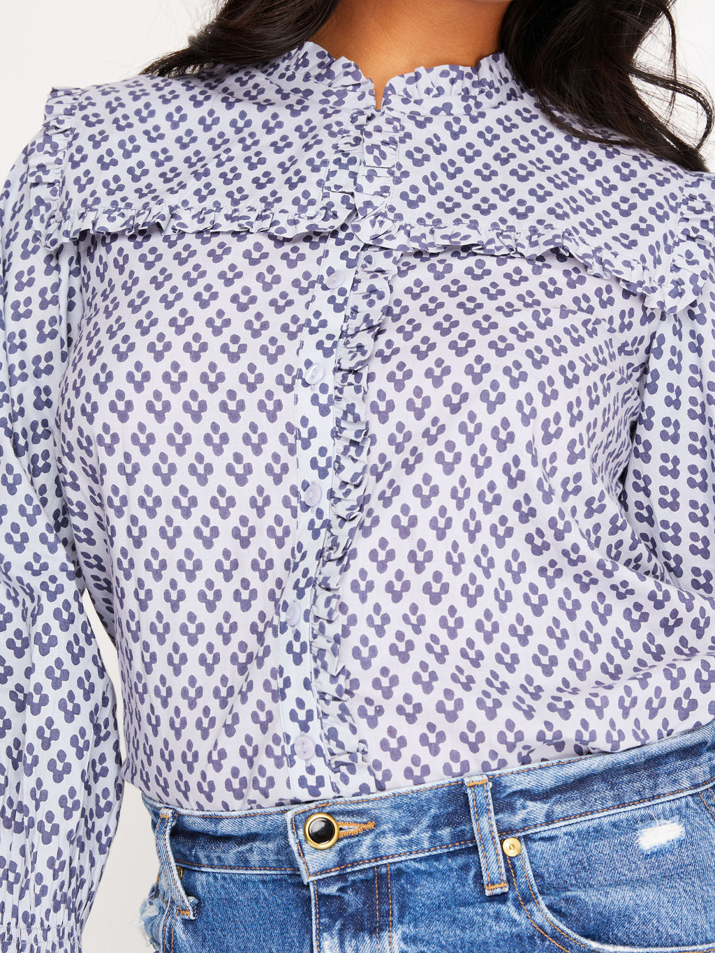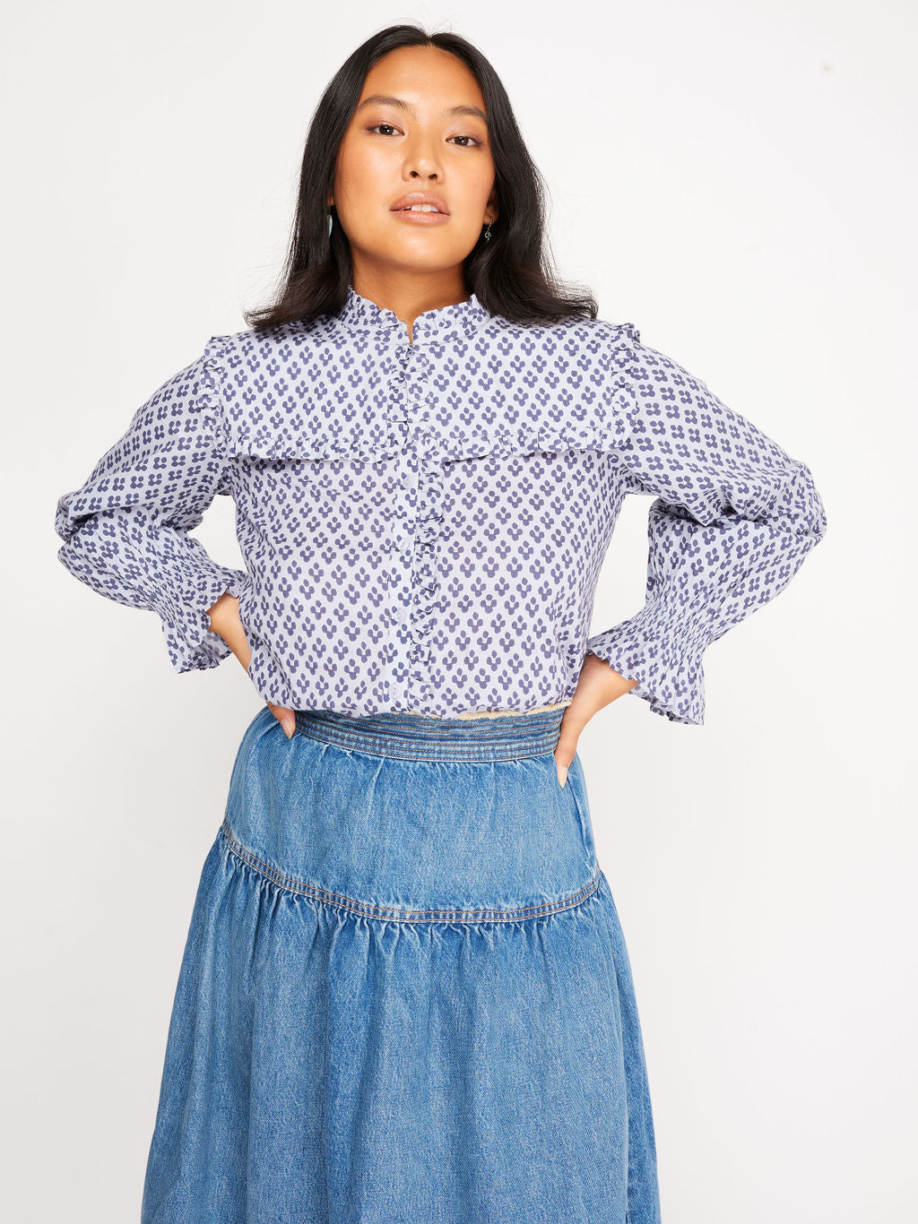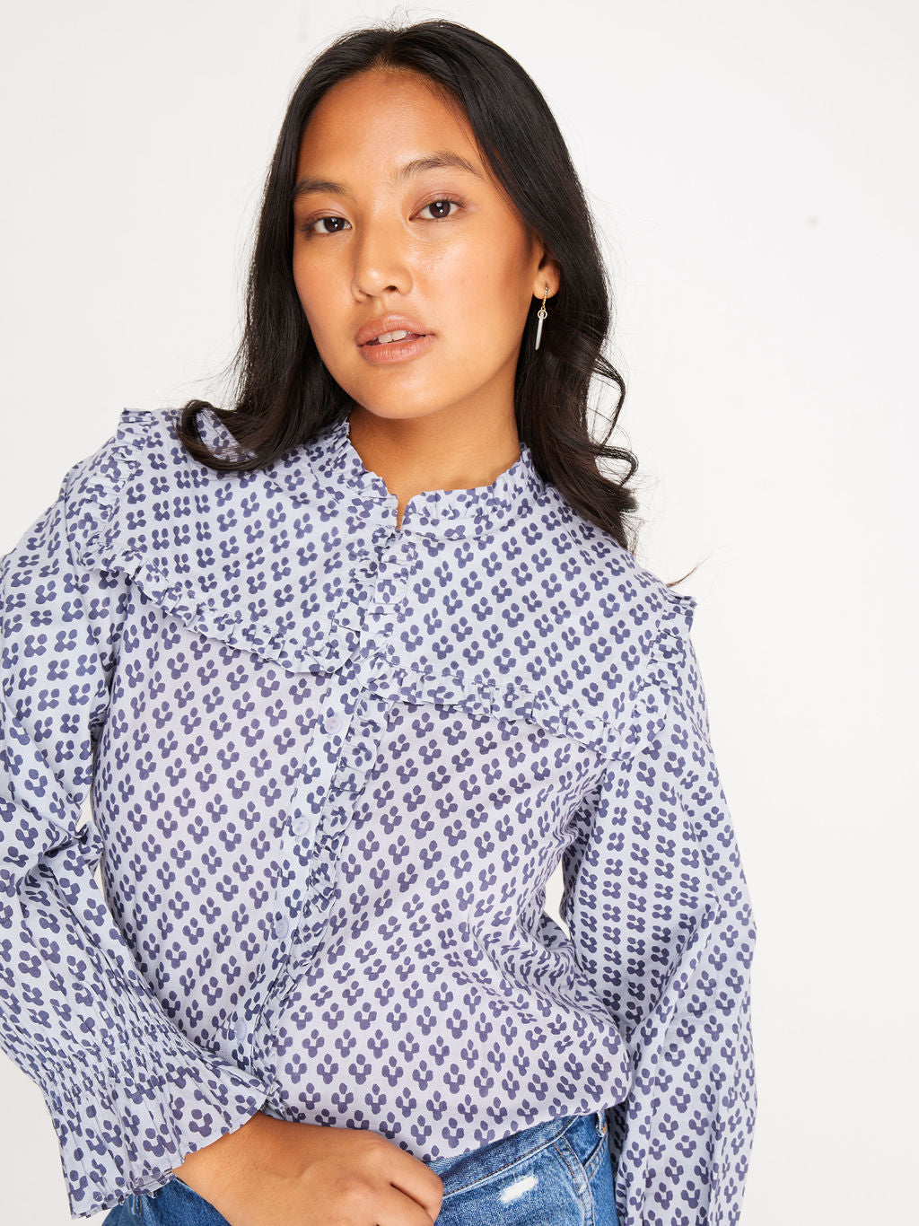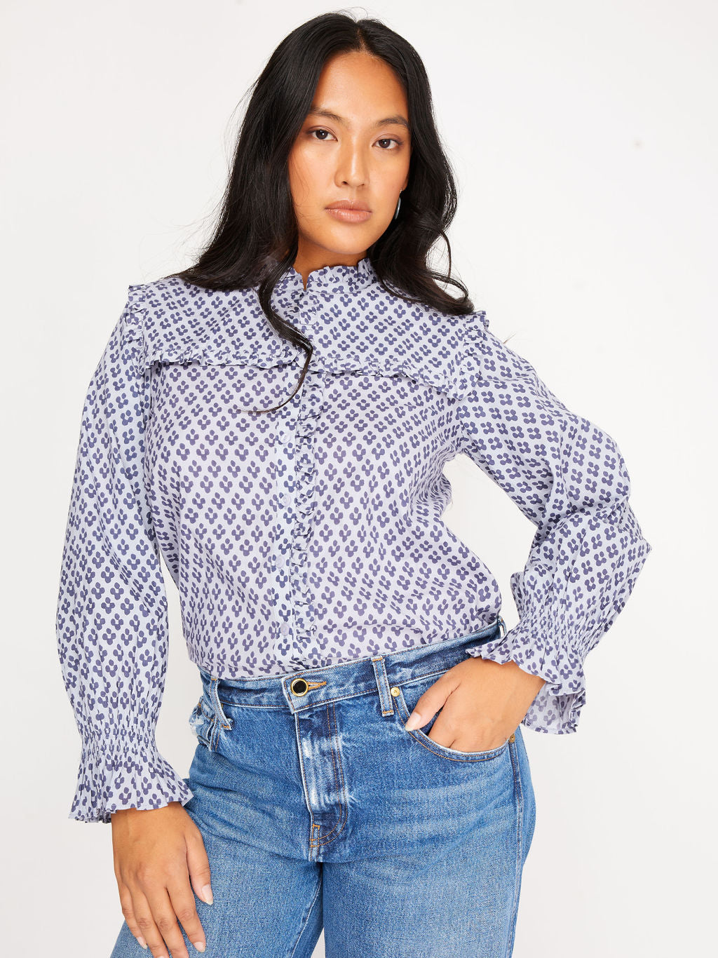 With tiny but exquisite details throughout, Beth is the perfect wear now, layer later blouse. Making its debut is our new diamond block print, the perfect, non-print, print – choose between the warm pink version or blue on blue both of which will work with so many shades and tones in your wardrobe.