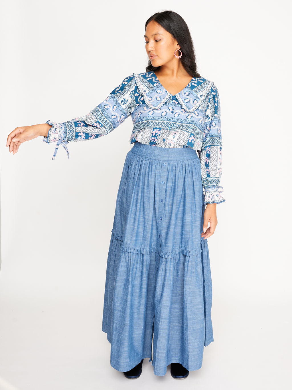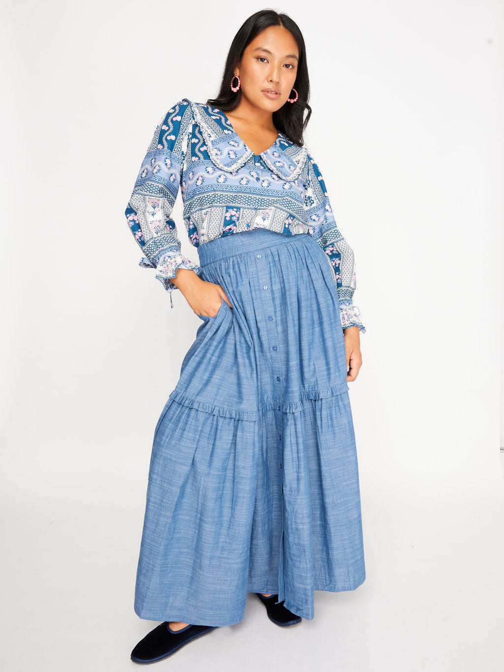 Based on the original bestselling Mimi skirt, the chambray Mimi is an update for Fall'24.