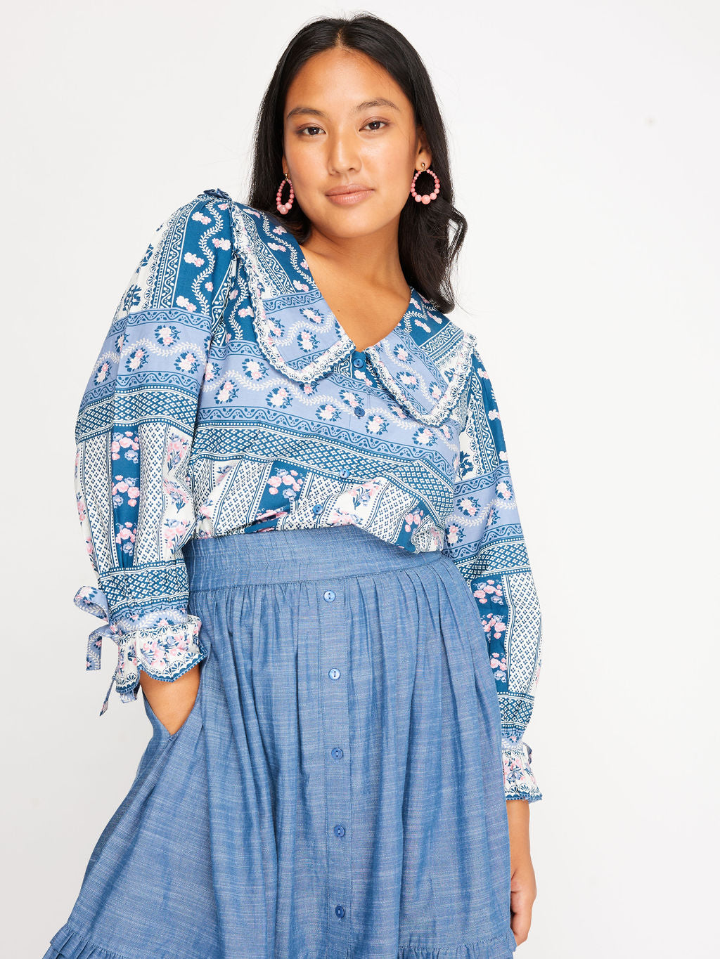 The chambray Mimi can be worn with the coordinating chambray Ruby blouse or any of the blouses in the new fall collection. We’ll also be adding one of our new Gigi knits (launching soon) and reaching for the skirt as a great alternative to jeans.