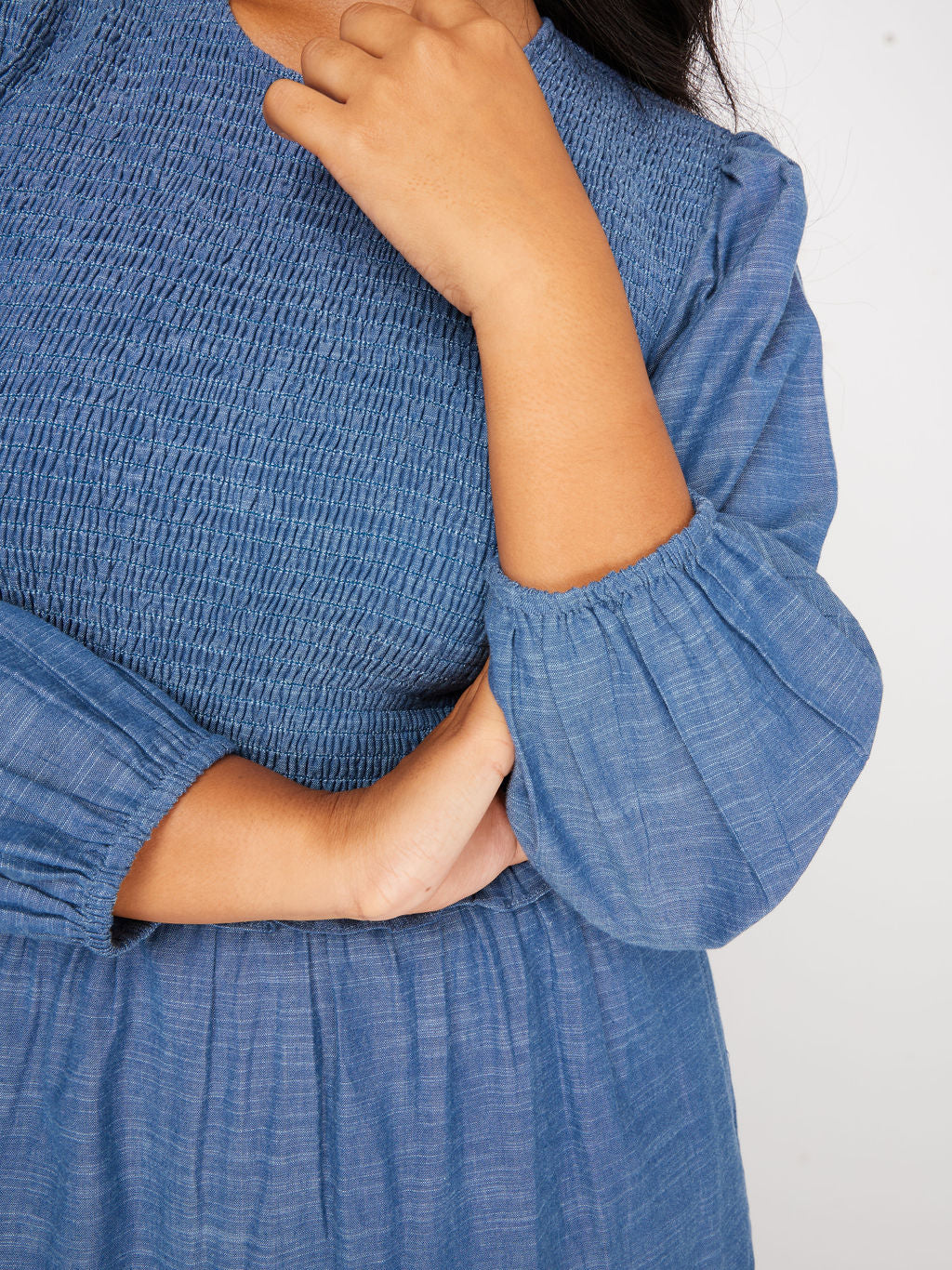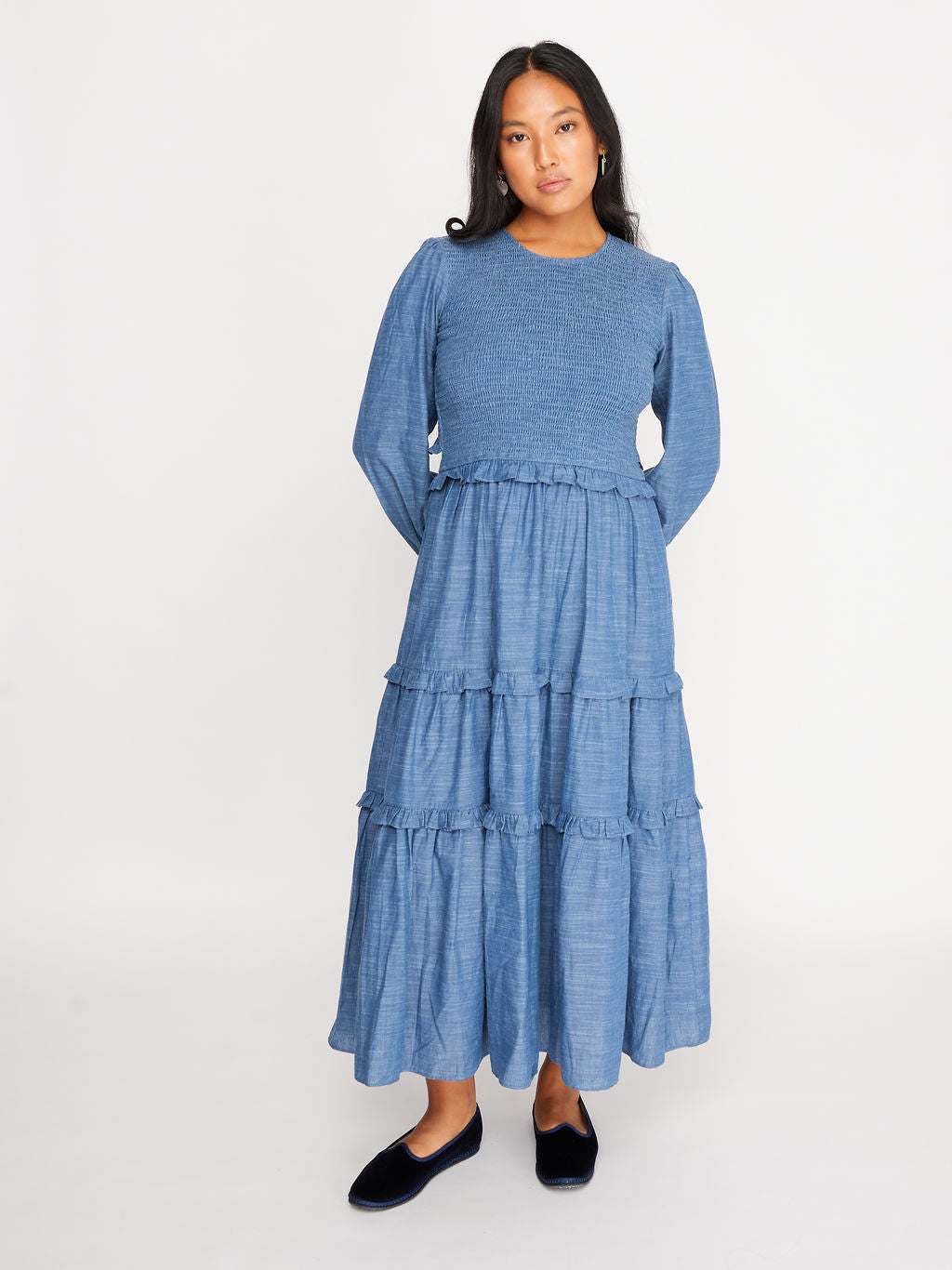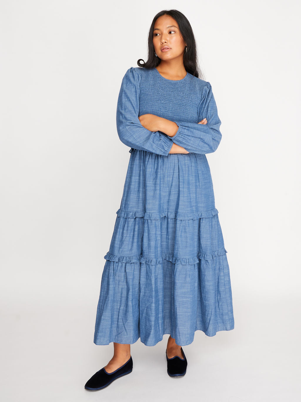 We’ve brought this much-loved style back in classic blue chambray, making it the perfect piece for transitioning between the seasons and between warmer and cooler climates by swapping out footwear and accessories to suit.