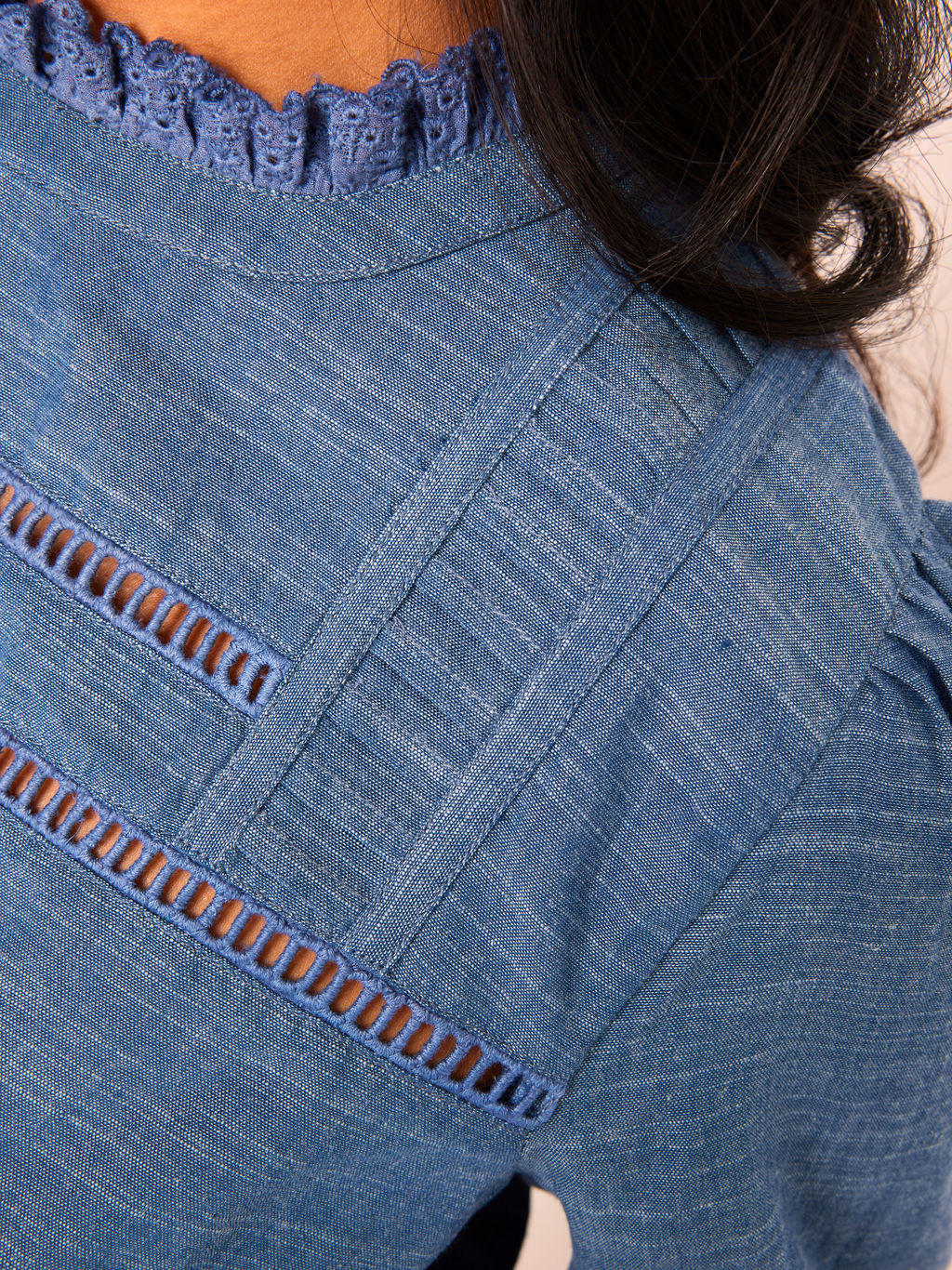 The Ruby combines so many lovely design details - pretty pintucks at the neck and the hem, ladder lace inserts across the front and broderie trim at the neck and cuffs.
