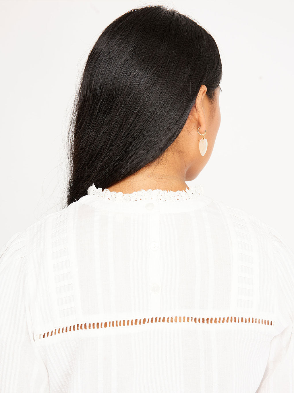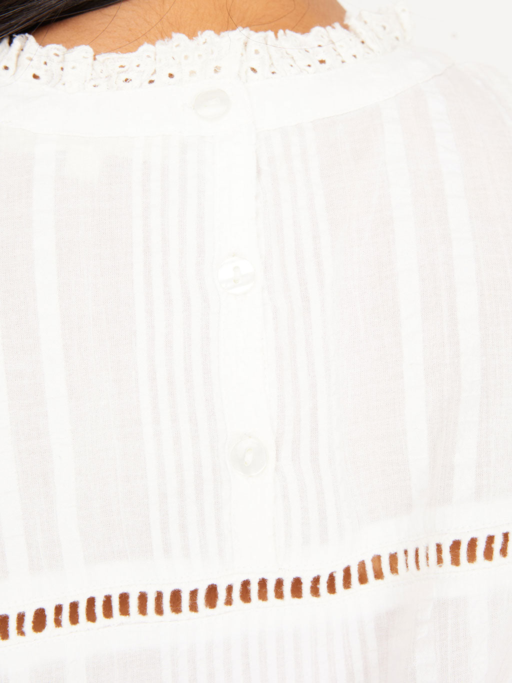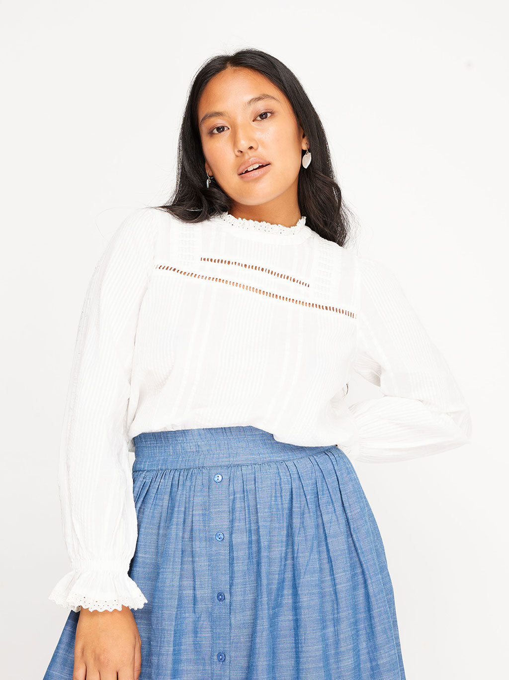 The Ruby combines so many lovely design details - pretty pintucks at the neck and the hem, ladder lace inserts across the front and broderie trim at the neck and cuffs.