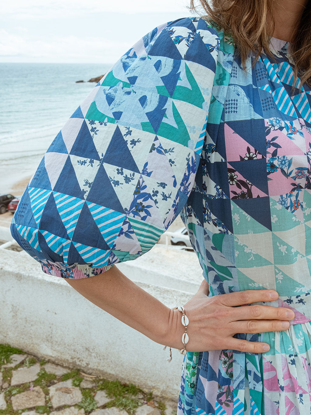 The Mimi top has a full puff sleeve to the elbow, relaxed elastic cuff detail and it sits nicely on the waist - perfect for wearing with the Mimi maxi skirt but also a flattering length to wear with jeans or trousers.